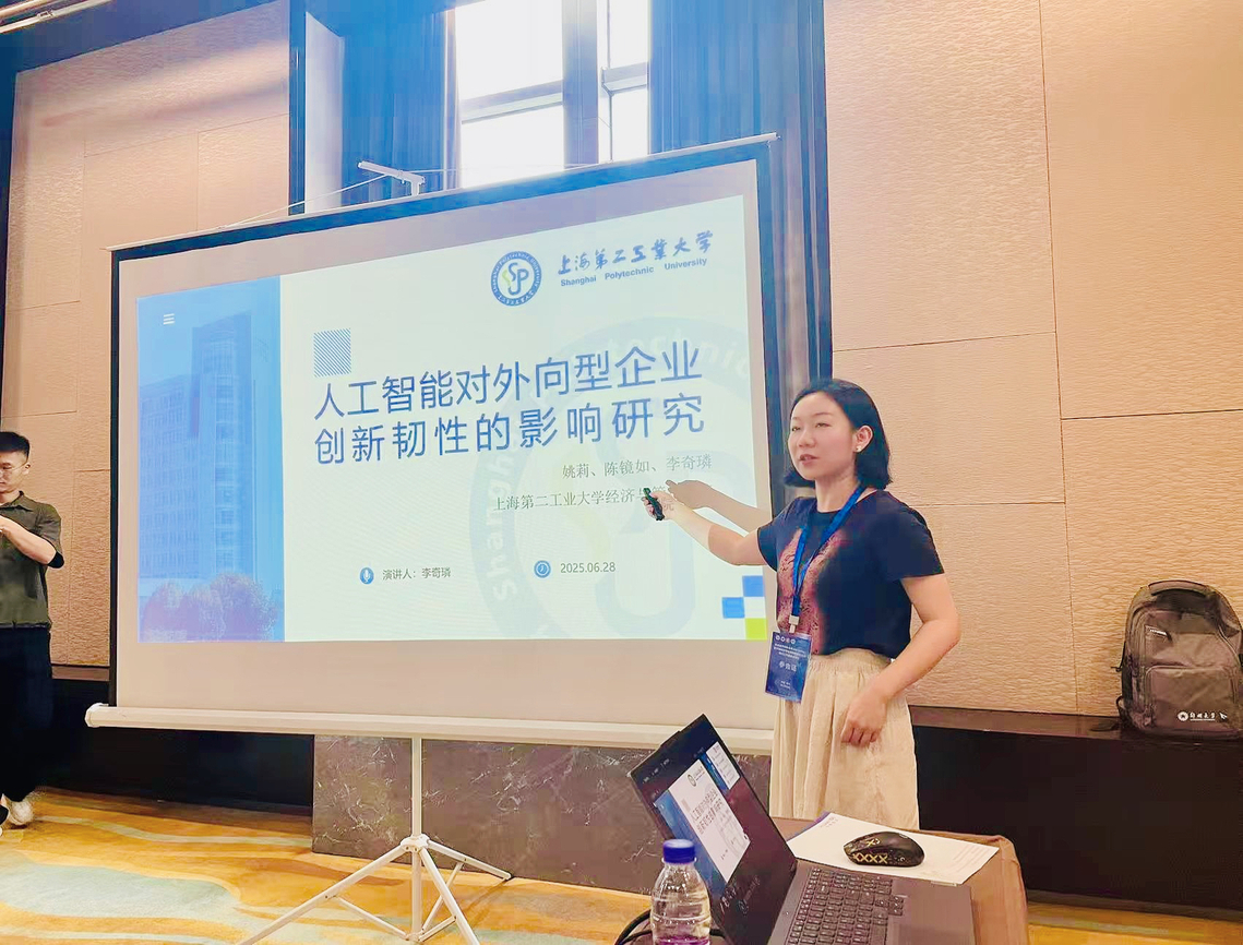 公司青年教师李奇璘和郑国姣,代表国际商务专硕教学科研团队参加了此次论坛。国际商务专硕方向负责人姚莉和李奇璘老师带领团队的科研成果,成功被论坛录用,并在分论坛上进行学术汇报展示。团队成果围绕人工智能在经济与管理领域的应用展开研究,分别从《人工智能对外向型产业创新韧性影响》和《新质生产力对企业出口韧性影响》两个角度,探讨了人工智能驱动下科技创新和产业创新的关键理论与现实问题,丰富了智能时代创新范式转型的视角和思路。