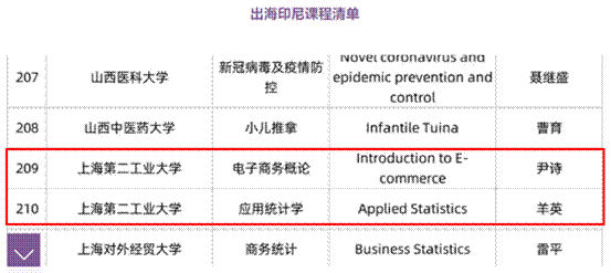 公司羊英老师的《应用统计学(全英文)》(英文名:Applied Statistics)课程被同时推送到泰国、印度尼西亚两个国家慕课平台;尹诗老师的《电子商务概论(全英文)》(英文名:Introduction to E-Commerce)课程被推送到印度尼西亚国家慕课平台。