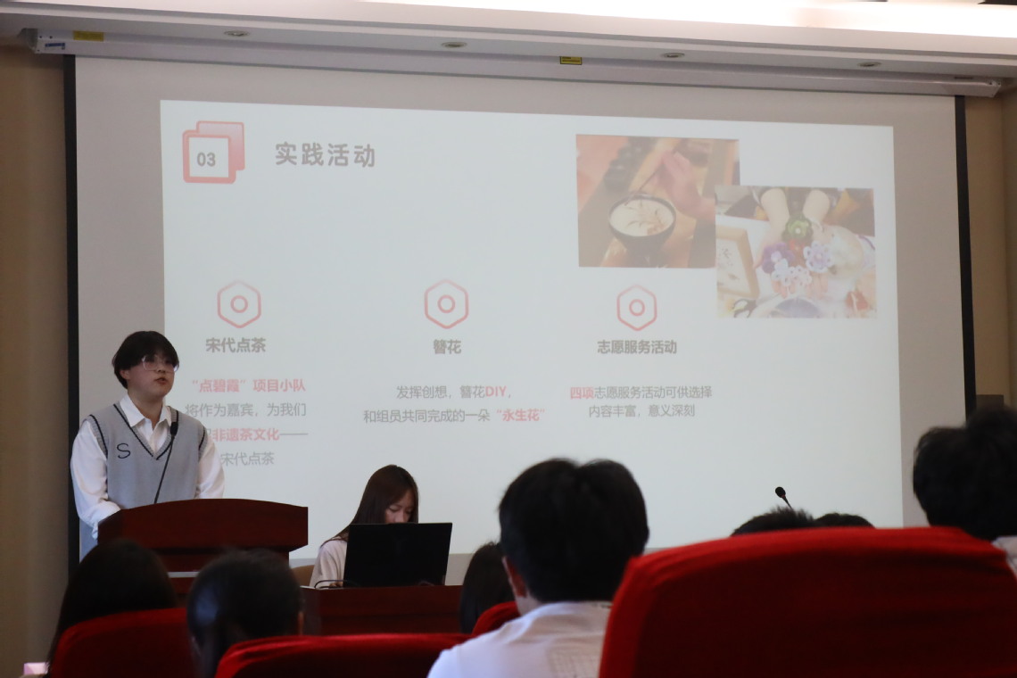 随后,太阳成tyc122cc团委组织部负责人陈燕楠对本次培训进行课程介绍。本次培训班分为专题课堂、特色课程、经验分享和实践课程四个板块,风格迥异,内容丰富。22电商A2钱静作为往届学员代表作分享,强调了员工骨干培训班课程的丰富与趣味,期待同学们在培训中收获成长。