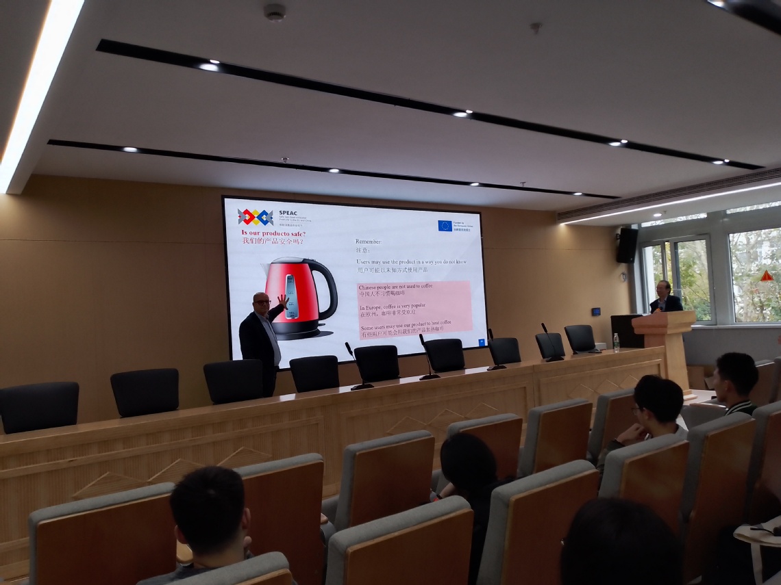 座谈会后,VERDERA MARI, FranciscoJavier与刘开明博士共同为员工们做了一场关于“欧盟产品安全法规和标准体系介绍”的精彩报告。报告中,两位专家结合中欧在产品安全领域的实际案例,深入剖析了产品安全的重要性和挑战,就如何提升产品安全水平给出了具体建议,并介绍了从事产品安全领域工作应该具备的必备技能。报告内容深入浅出,既有理论高度,又贴近实际,赢得了在场员工的热烈掌声。