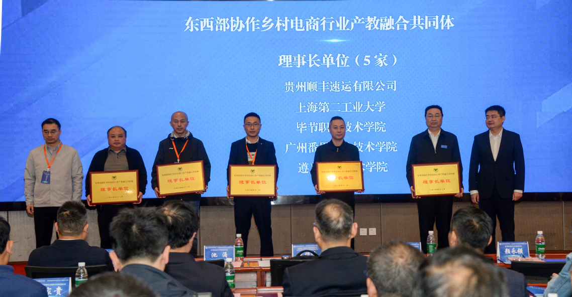 会议表决通过了《东西部协作乡村电商行业产教融合共同体章程》,审议通过了共同体第一届理事会成员单位及机构人员建议名单。会议期间,有关行业人员作了主旨报告及专题讲座。此外,还举行了共同体揭牌、授牌仪式、校际合作签约和校企合作签约仪式,公司被授予理事长单位。