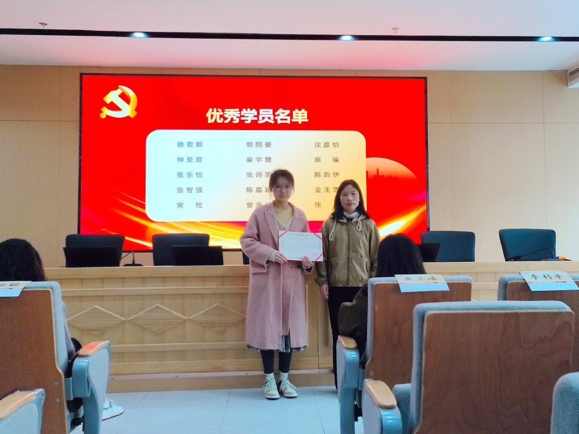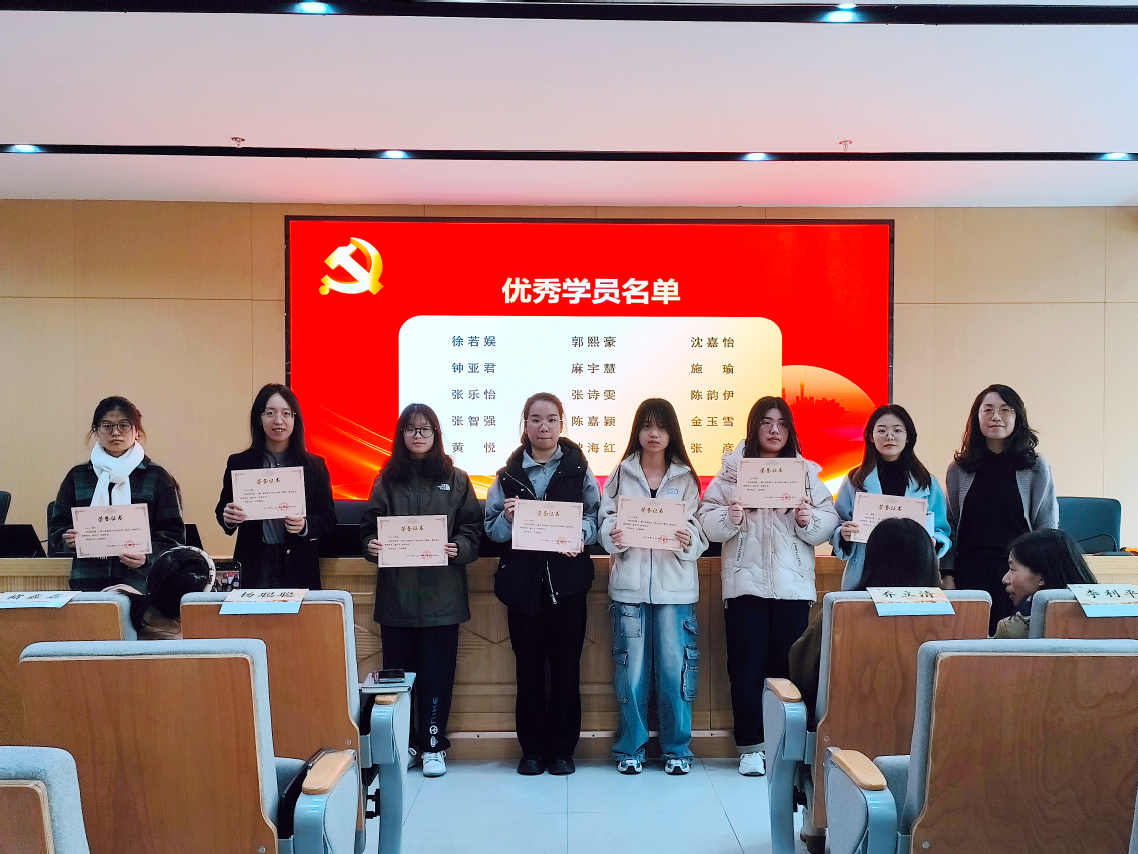 汇报展示结束后,进入颁发优秀学员、最佳实践小组证书环节。在本期培训班中,15名学员凭借在理论学习、实践活动、团队协作等多方面的出色表现脱颖而出,荣获“优秀学员”称号,杨聪聪老师为获奖学员颁发证书。同时,四支部1组在实践项目中展现出高度创新性、实效性以及团队协作精神的小组被授予“最佳实践小组”荣誉,李利平老师为获奖小组颁发证书。证书的颁发不仅是对他们过往努力的肯定与表彰,更是激励全体入党积极分子在未来继续砥砺前行,以更高标准要求自己,发挥先锋模范作用。