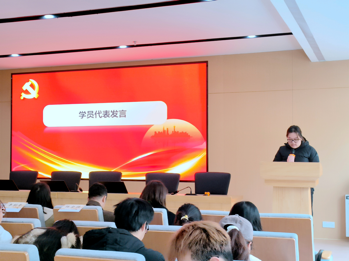 随后,学员代表黄悦发言。她回顾了在培训班期间的学习历程,从党的理论知识学习到实践活动参与,深刻体会到了作为一名入党积极分子的责任与使命。表示将以此次培训为新起点,进一步坚定理想信念,加强党性修养,在学习、生活和工作中时刻以党员标准严格要求自己,积极传播党的声音,为公司和班级建设贡献更多力量。