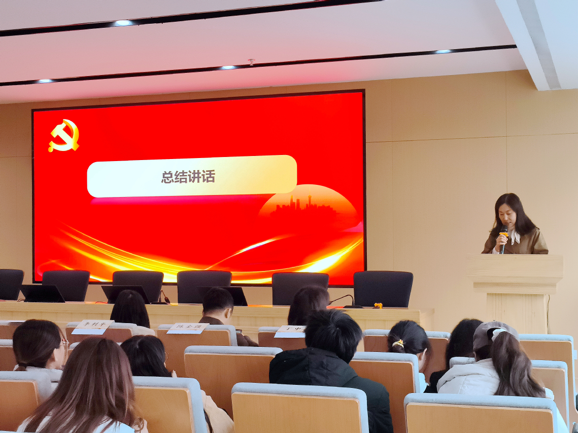 乔立清老师作总结讲话。她对本期入党积极分子培训班的整体工作给予了充分肯定,勉励所有学员要持续学习党的理论,增强政治定力,以党员标准严格律己,在学习、工作、生活和社会实践中发挥先锋模范作用,积极靠拢党组织,时刻准备好接受党组织的考验和培养,用实际行动向党组织表明自己的入党决心。