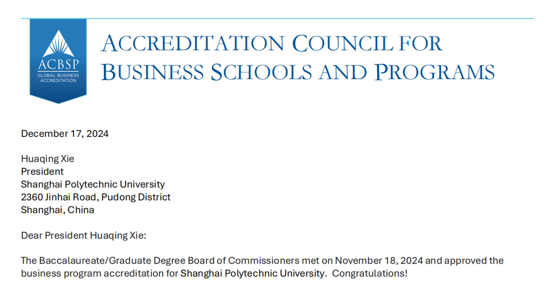 近日,公司收到ACBSP(商公司认证委员会,即Association Council for Business Schools & Programs)的官方正式通知,宣布公司的电子商务、国际商务和物流管理三个专业成功通过ACBSP国际商科专业认证。此次认证是公司首次获得的国际级专业认证,标志着公司在国际化办学进程和人才培养质量方面取得了新的重大突破,迈上了新的台阶。