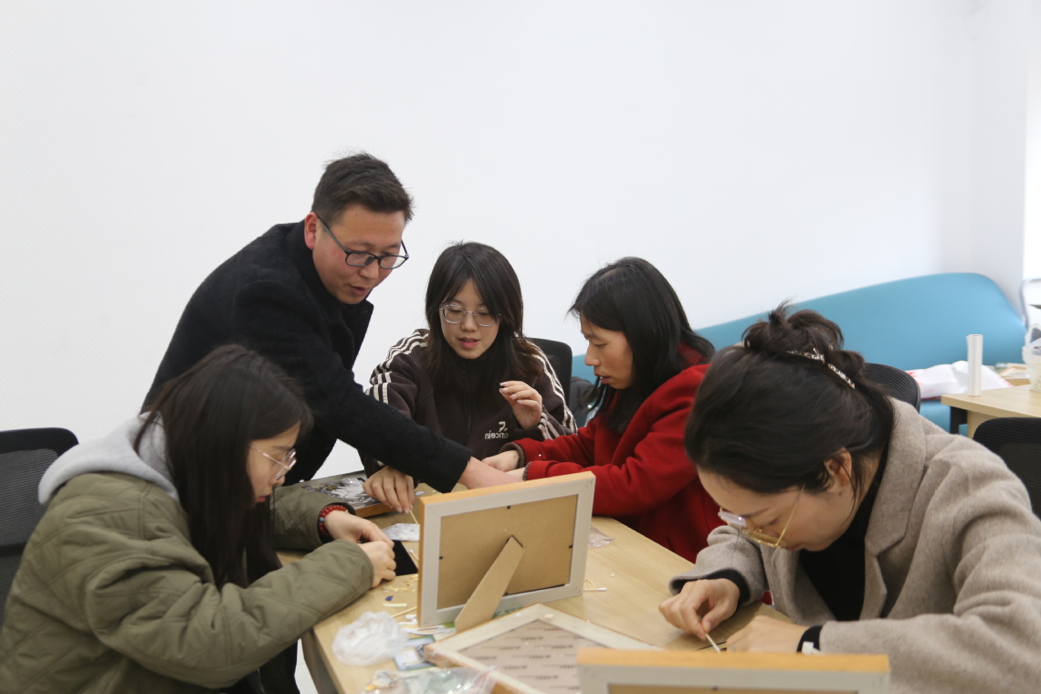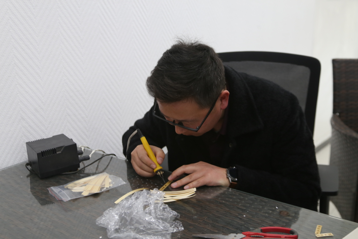 实践环节中,女教师以芦苇为媒进行主题创作。李辉联合公司青年创业团队特别准备了预处理的芦苇材料与环保黏合剂,通过粘贴、烙刻等技法,将"芳华传家"化作立体画卷。