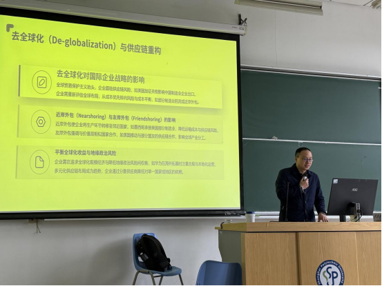 宋老师对国际商务如何适应全球不确定性、跨国公司如何捕捉市场变化做出调整进行了分析讨论,例如:研究企业如何在地缘政治动荡与科技变革中制定适应性国际化战略,如灵活调整市场布局;探索企业应对全球不确定性的风险管理策略,如通过多元化投资降低风险。