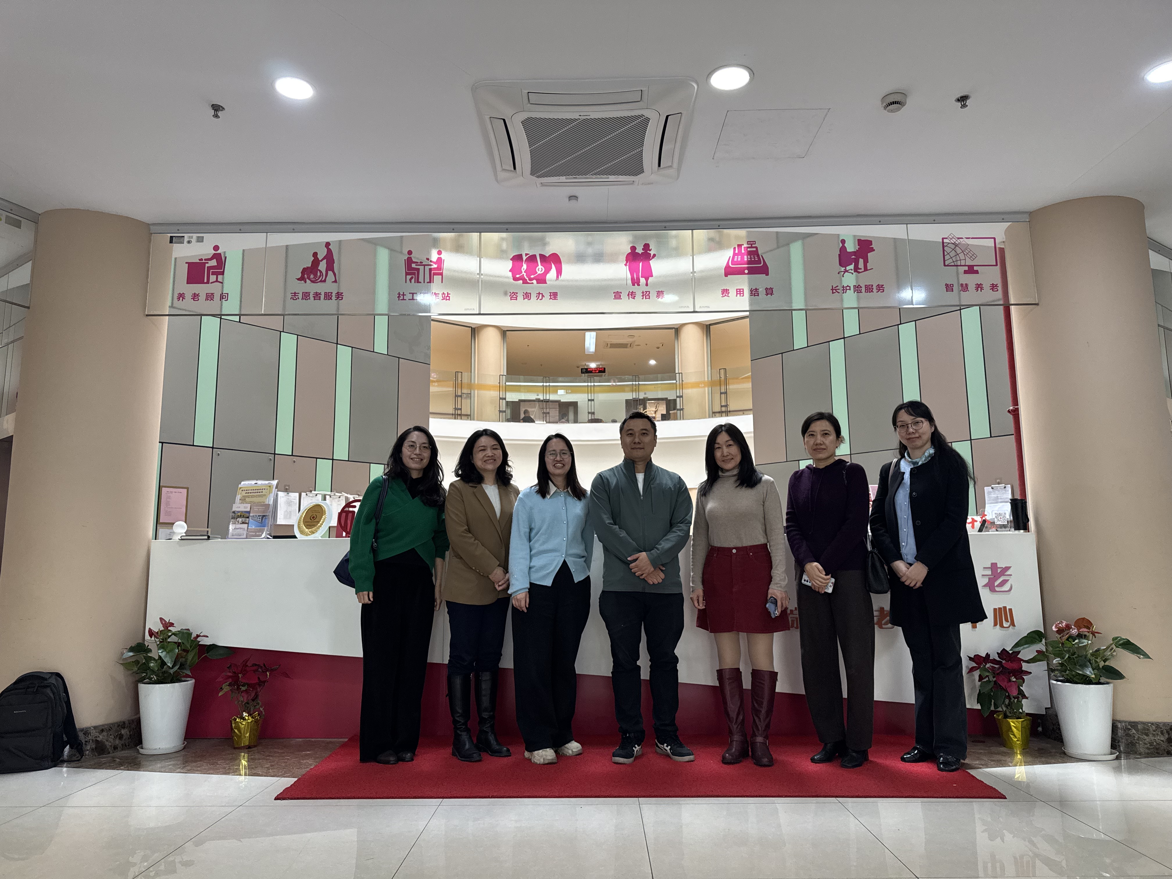 3月21日和26日,​太阳成tyc122cc党委书记乔立清、经理卓武扬、党委副书记杨聪聪、副经理潘海兰以及酒店管理专业教师团队,先后走访调研了浦惠养老集团旗下金杨养老院、曹路养护院,深入了解上海智慧养老机构的运营与发展模式,共同探索智慧养老服务人才培养方向。浦惠养老服务(集团)高万杰书记、浦东新区养老发展研究常务副经理杨佩华、曹路养护院经理黄茵茵等集团骨干参与调研。