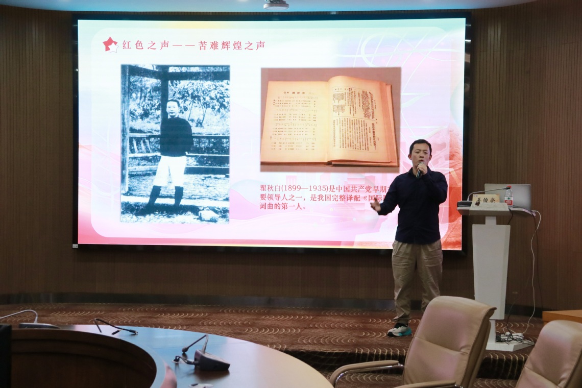 仪式最后,全体人员共同参与姜俊亮老师主讲的“歌声里的党史”专题党课。通过赏析《夕歌》《松花江上》等经典红色歌曲,深入挖掘歌曲背后的历史故事与精神内涵。党课以音乐为载体,带领学员重温党的奋斗历程,感受革命先辈的热血豪情,让党史学习教育在艺术氛围中入脑入心。