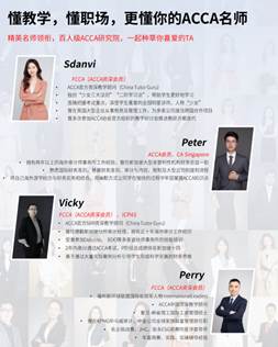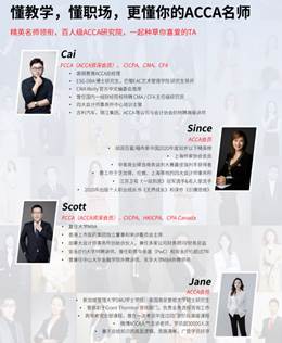 由全球知名企业CFO、合伙人、财务/审计经理人组成的名师,都拥有至少5年的教龄。在十几年的ACCA教学过程中,他们已经为数万名ACCA学员授课,培养出近百名全球状元和大陆状元的优秀学员。并为超过30所国内大学提供ACCA教学服务,并成为GE、强生、卡特彼勒、德尔福中国、安永等全球知名企业ACCA培训合作伙伴。
