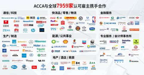 ACCA以“经济、商业、科技”为导向培养会员,与全球7828家认可雇主(同等条件下会优先录用ACCA学员或会员的企业)携手合作共同发展。其会员和学员广泛就职于花旗银行、工商银行、中国银行等大型国内外金融机构;阿里巴巴、通用电气、联合利华等大型企业和以四大会计师事务所为代表的国际财务金融服务机构等,大部分担任中、高层管理职位,是企业发展的中流砥柱。